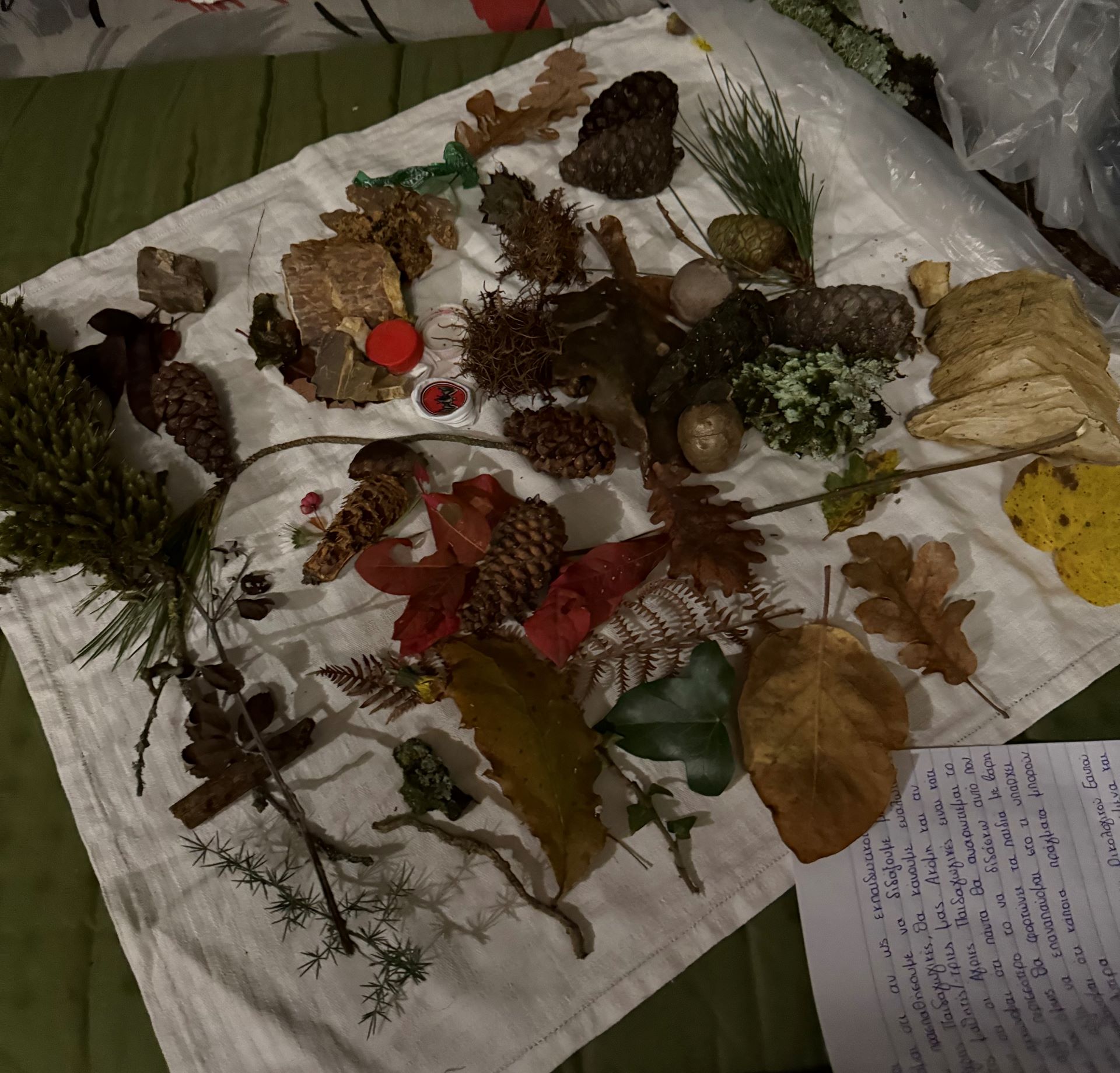Σημειωματάριο, Στυλό ή μολύβι, Θερμός, Καπέλο, Αντιηλιακό, Άνετα ρούχα & μια αλλαξιά, Παπούτσια για περίπατο στη φύση, Σαγιονάρες, Πετσέτα, Ποτήρι, Πιρούνι-κουτάλι-μαχαίρι, Τάπερ/πιάτο, Αντικουνουπικό, Backpack για τους περιπάτους, Ενα αγαπημένο παραμύθι. Αν ξέρετε κάποιο μουσικό όργανο, καλοδεχούμενο στον κύκλο μας!